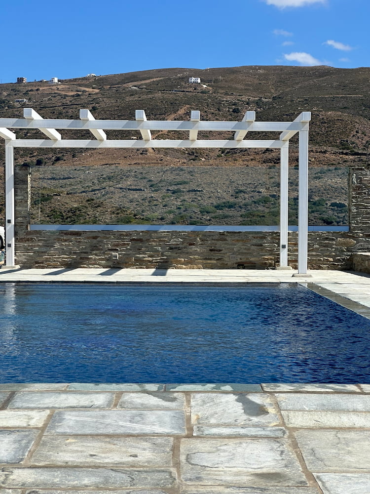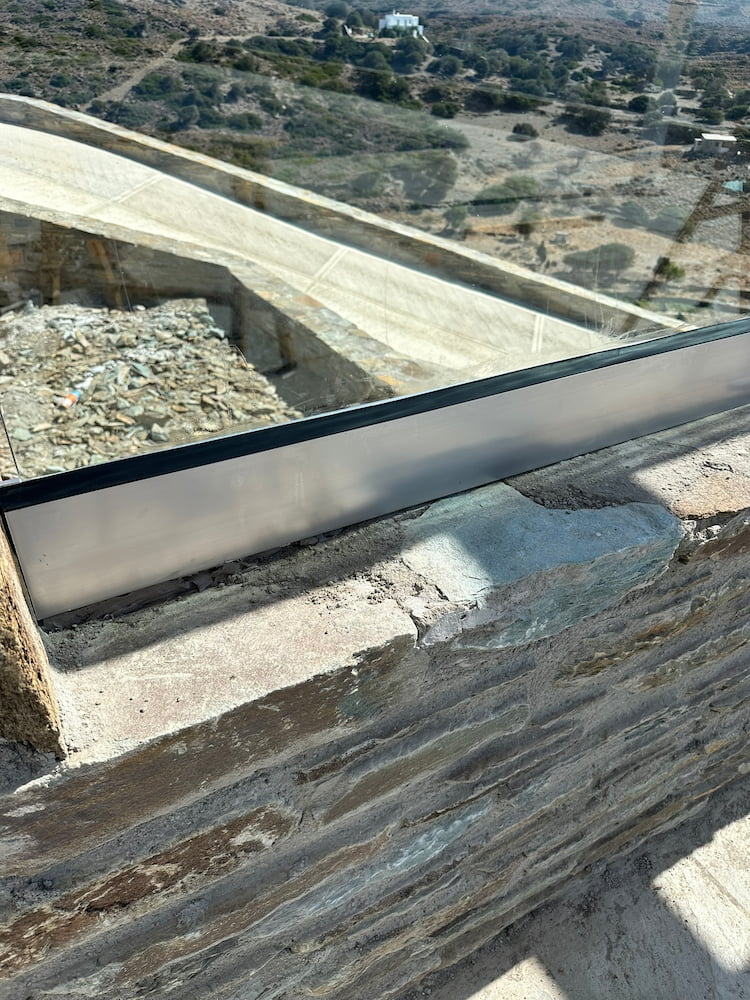 Στην Άνδρο, τοποθετήσαμε υαλοπίνακες σε εξωτερικούς χώρους, χαρίζοντας έτσι μοντέρνα εμφάνιση, φωτεινότητα και ωραία θέα. Το έργο αναβάθμισε την εικόνα του κτιρίου και το έκανε πιο εντυπωσιακό.